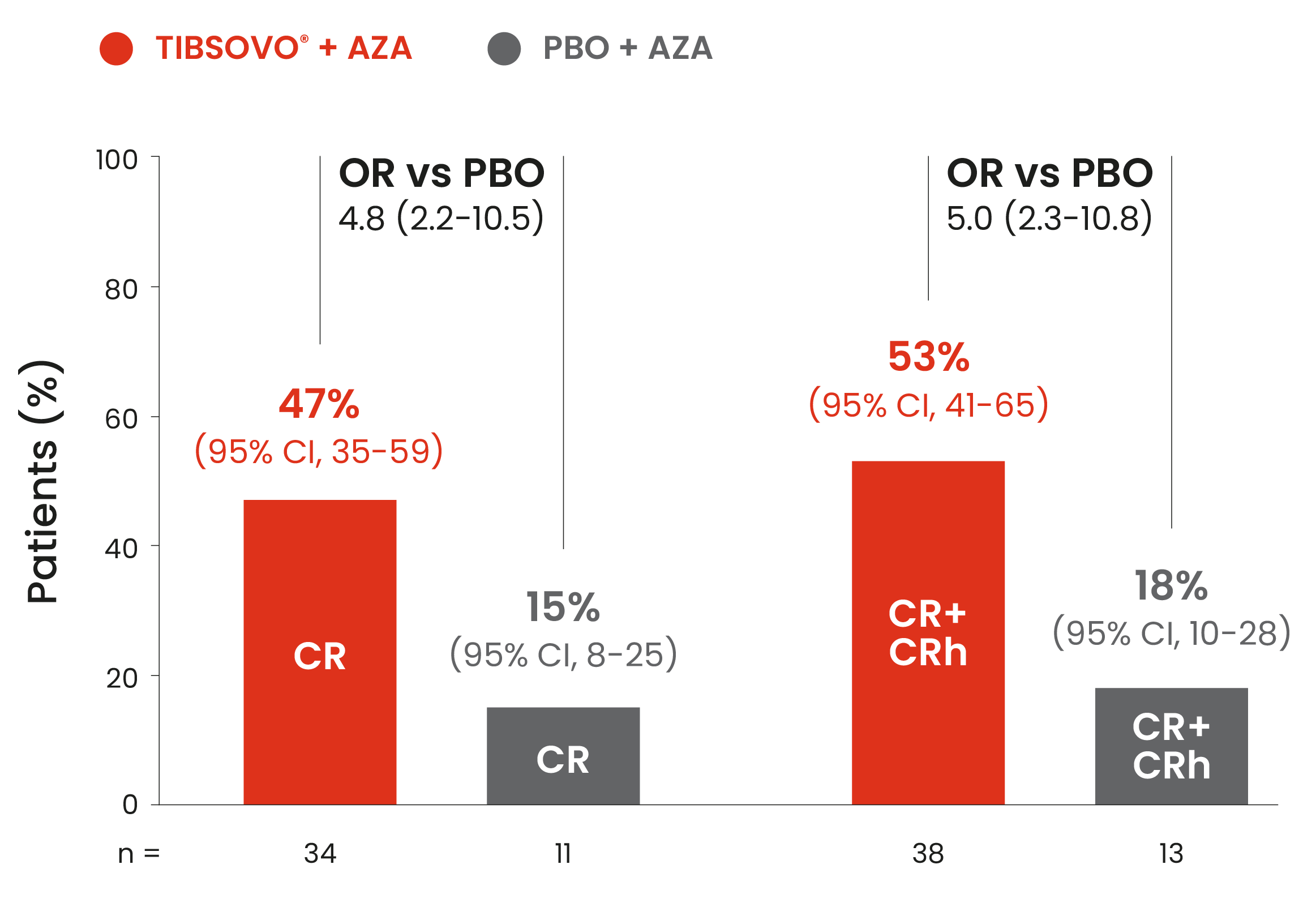 TIBSOVO® + AZA achieved 56% instantaneous risk reduction vs PBO + AZA